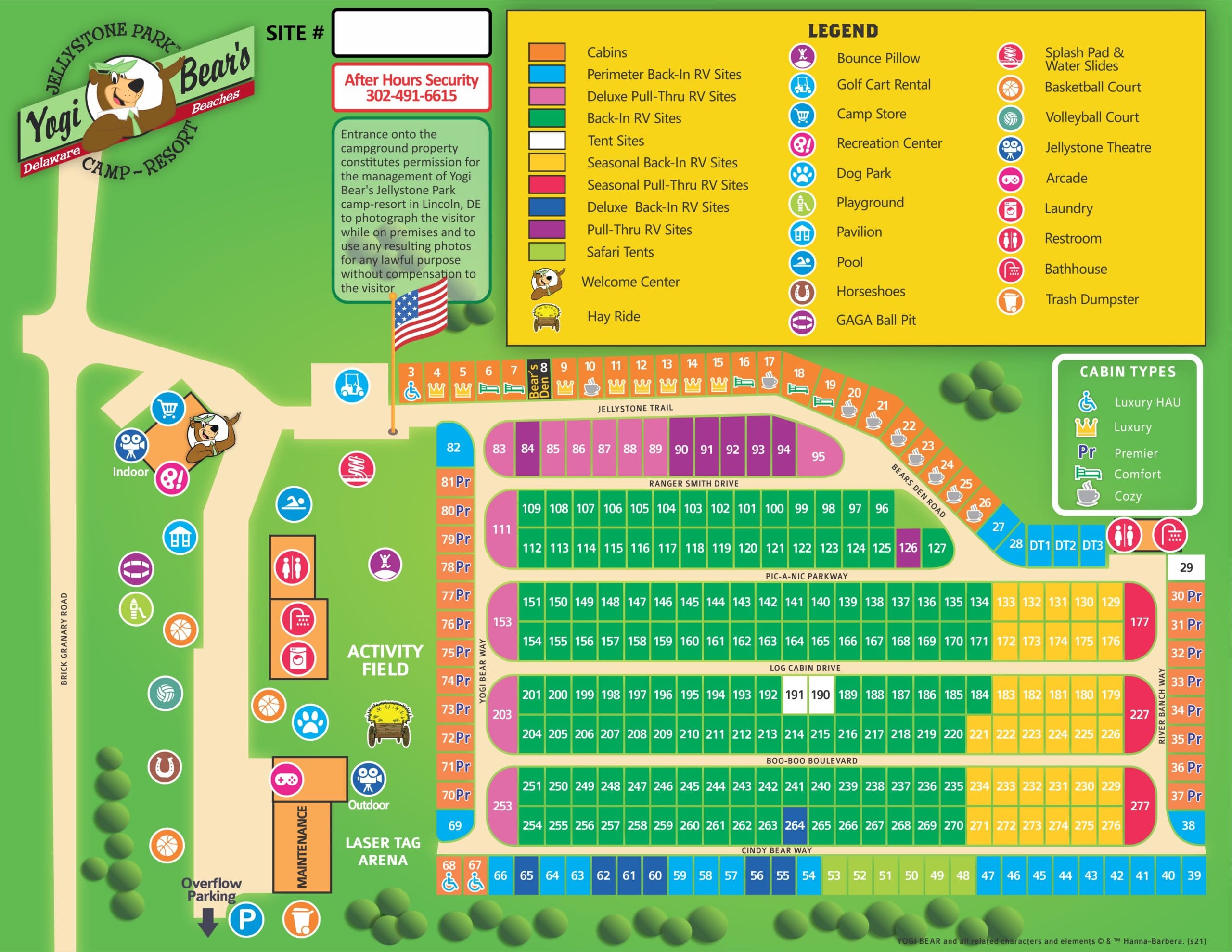 Jellystone Delaware Map Yogi Bear’s Jellystone Park At Delaware Beaches Lincoln : You can enjoy making tax-free purchases in Delaware since it is one of the states with no sales tax. The property tax rate in Delaware is relatively low, and the state won’t tax income below $2,000. . Delaware has 16 of the 2,284 bound delegates up for grabs in 2024 to Republican candidates. In raw delegates, Delaware has one of the lowest counts, along with Pennsylvania (16) and Vermont (17). .