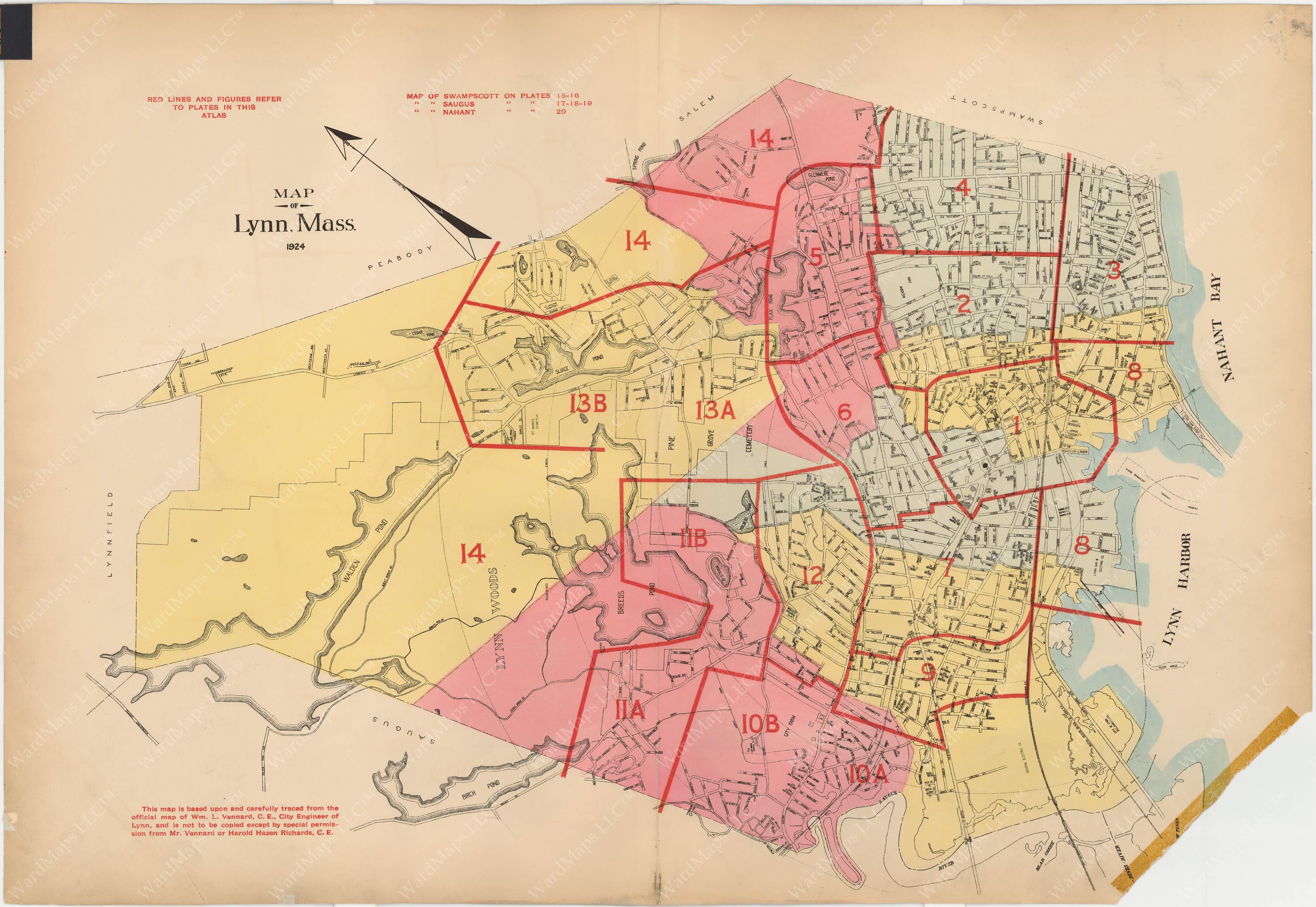 Greater Lynn, Massachusetts 1924 Index Map โ WardMaps LLC