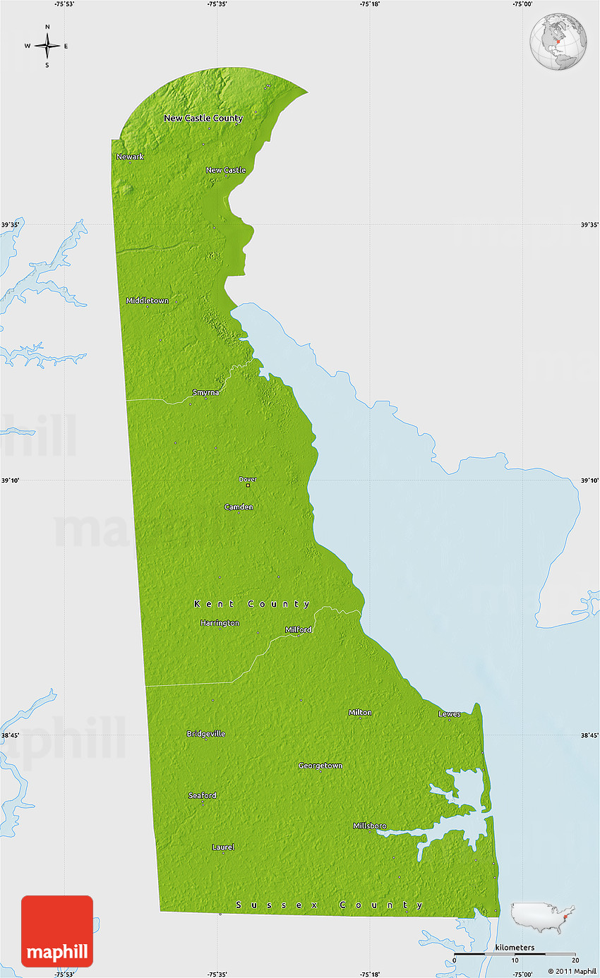 Physical Map Of Delaware