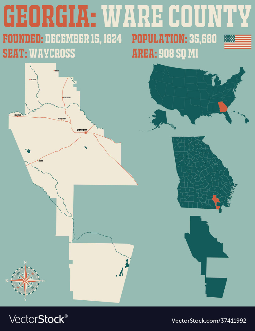 Ware County City Waycross Location On Stock Vector (Royalty Free